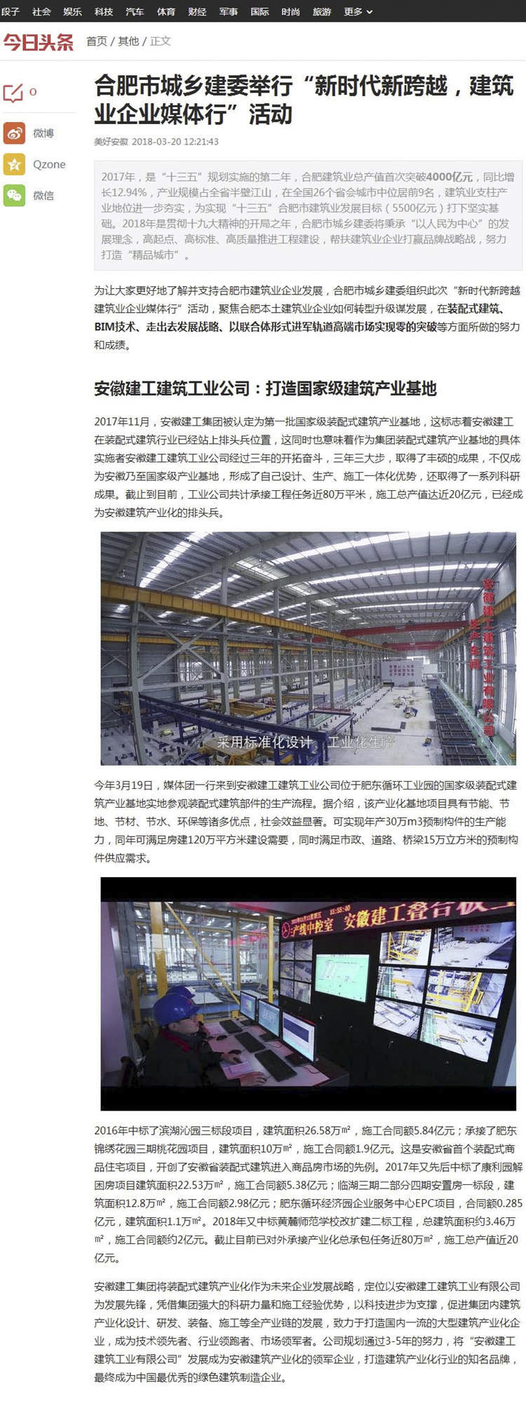 今日頭條、巴士頭條、安徽建筑業——合肥市城鄉建委舉行“新時代新跨越,建筑業企業媒體行”活動