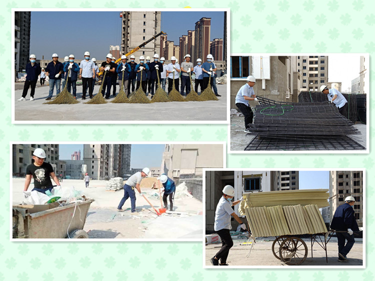 5月1日是贊美勞動者的日子,大連公司各項目組織義務勞動活動致敬最美勞動者。各區域項目職工主動的開展清掃現場、規程材料的義務勞動活動,用他們的實際行動充分展現著“我勞動,我快樂”的精神。其中,煙臺項目部30余名管理人員共清理現場建筑垃圾30余車,搬運保溫材料20立方,搬放鋼絲網片5立方;濟南瀾湖郡幼兒園小學項目,10余名管理人員共規整鋼管、木方等現場材料10立方,為項目現場栽種綠植共10平米;大連金連領地項目部共15名管理人員集中清掃施工現場600平,綠網鋪蓋露土共1000平米。辛苦勞動后,項目現場恢復整潔,職工們邊擦汗水邊喊著“勞動最光榮!”。