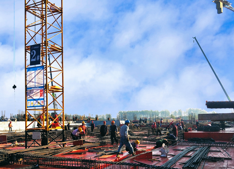 截至目前,項目共計完成土方作業120萬方,使用鋼材1.6萬噸,澆筑混凝土6.5萬方。另外16棟單體主體施工全面過半,預計12月10日前可實現全部封頂。