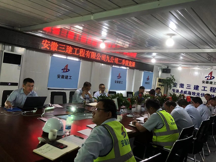 為推動學習貫徹習近平新時代中國特色社會主義思想主題教育走深走實,近日,九公司黨支部書記陸軍前往南通通威高效光伏組件制造基地項目開展學習貫徹習近平新時代中國特色社會主義思想主題教育專題黨課。