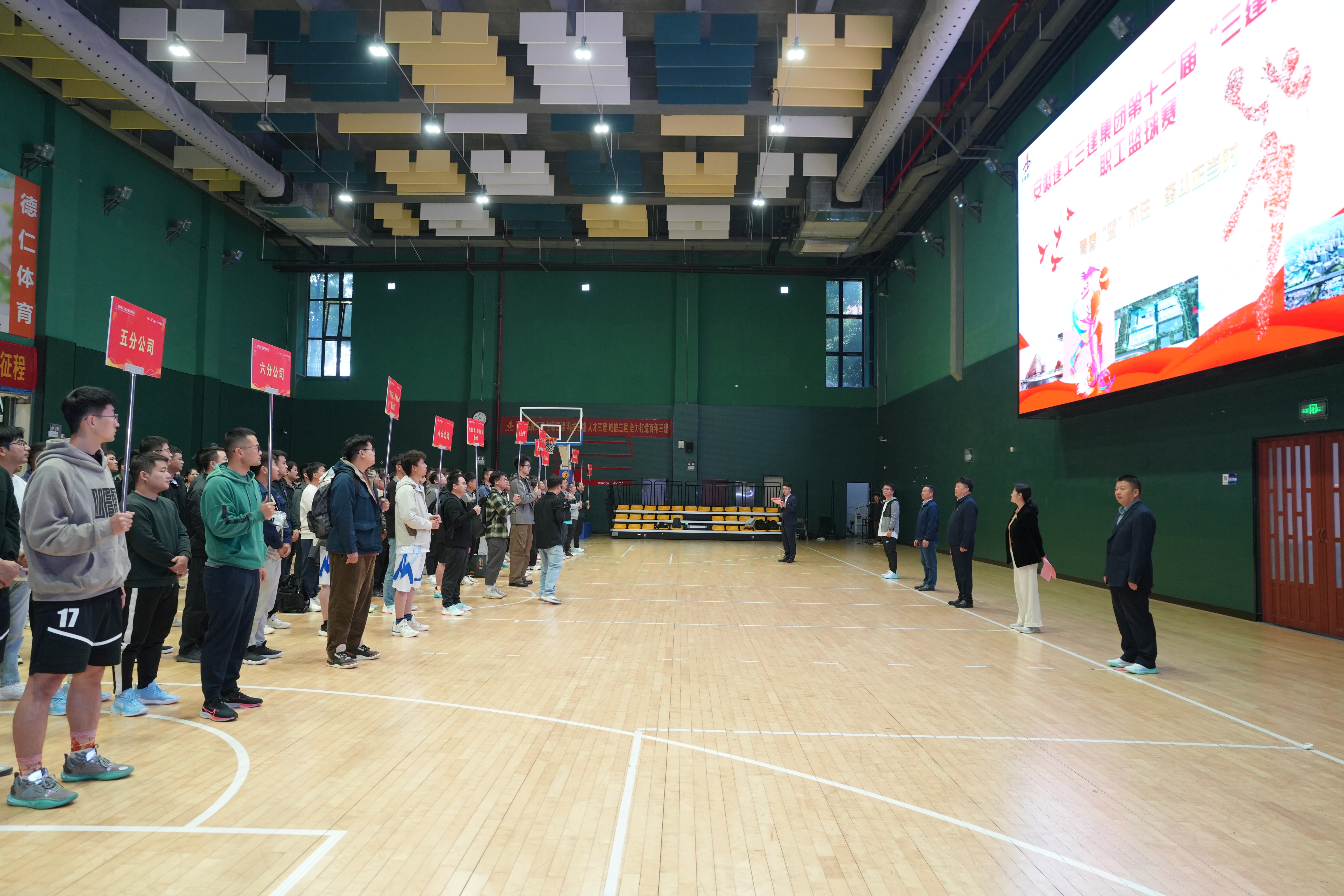 何洪春在開幕式致辭中表示,公司以深入學習貫徹黨的二十屆三中全會精神和習近平總書記考察安徽重要講話精神為契機,圍繞機構人員優化、統籌戰略布局、強化項目管理,謀劃實施了一系列重大改革創新舉措,企業的品牌影響力更強、核心競爭力更足、組織凝聚力更高,總體呈現穩中有進、進中向好的發展態勢。當前正是沖刺四季度、決勝全年紅的關鍵節點,在此刻舉辦“三建杯”職工籃球賽意義非凡,職工籃球賽活動不僅是職工強健精神體魄、展現進取風貌的有效載體,更是激發廣大職工干事創業、推動企業高質量發展的重要動力。他強調,各參賽代表隊要大力弘揚“敢于拼搏、勇于進取”的競技精神,力爭把本次籃球賽辦成一個“文明、熱烈、精彩、圓滿”的盛會,為公司高質量發展增添精神動力,為集團爭當“中國建筑企業排頭兵”譜寫團結奮進、共創輝煌的美好三建篇章。