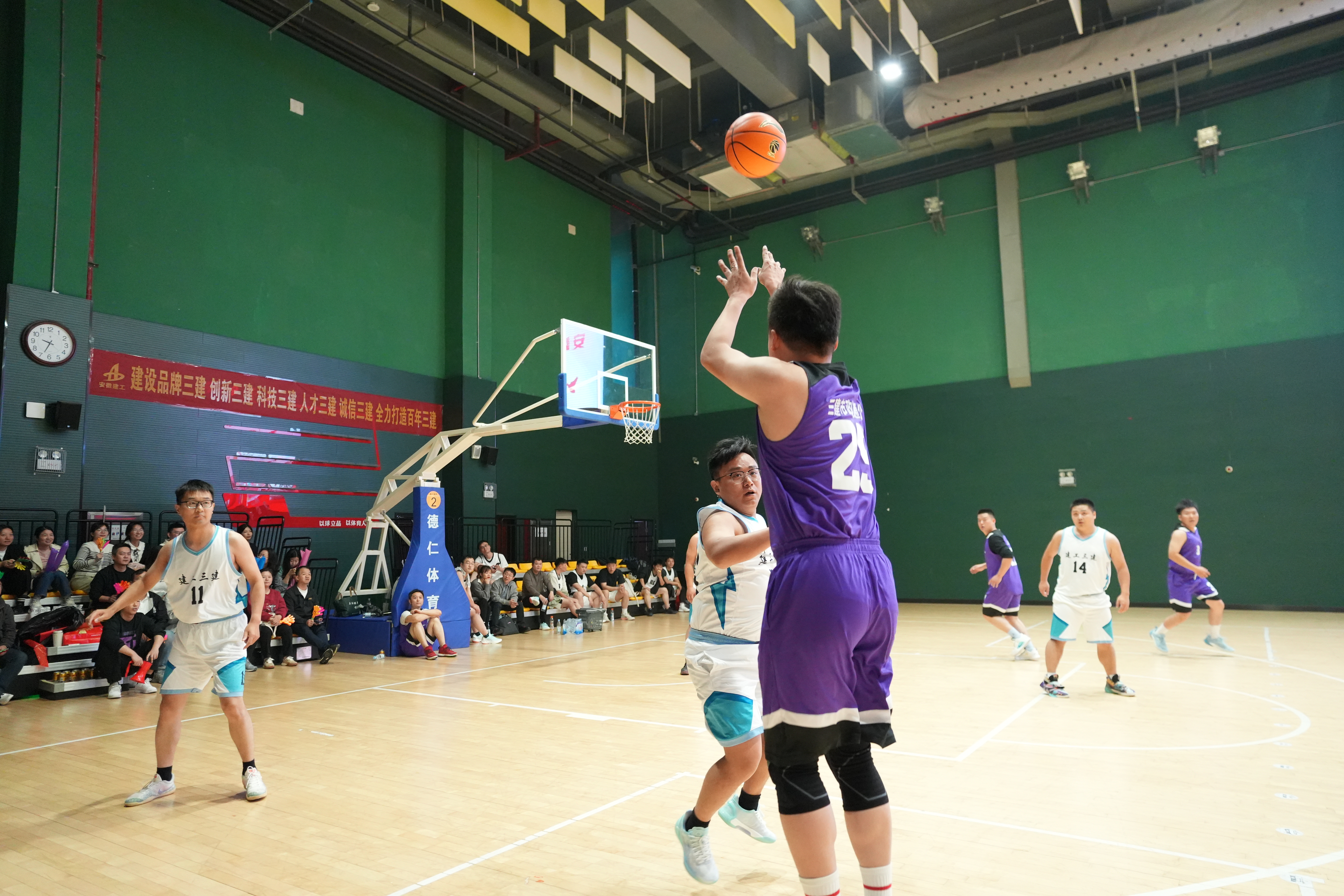自11月13日開賽以來,14支參賽隊在籃球場上配合默契、意氣風發,既有力量技巧的角逐,又有智慧協作的比拼;既有個人技術的高光時刻,也有團隊作戰的默契配合。他們全力以赴,那充滿力量的跳躍、犀利的突破、精準的投籃,無不展現出建工三建籃球健兒的實力與風采,以及對籃球純粹的熱愛。場上活力全開,場下熱血沸騰,歡呼聲、吶喊聲、助威聲此起彼伏,賽場的熱度持續推向高潮。決賽中,五分公司代表隊、十二分公司代表隊聯袂呈現一場精彩的比賽,隊員們個個激情滿懷,斗志高昂。籃球場上熟練地運球、默契地傳球、精準地投球,籃筐下你爭我奪、你攻我守,相互比拼著技術和實力,引來觀眾們鼓掌吶喊。在比分落后的情況下,雙方仍每球必爭,決不言棄,真正比出了風格,賽出了水平。