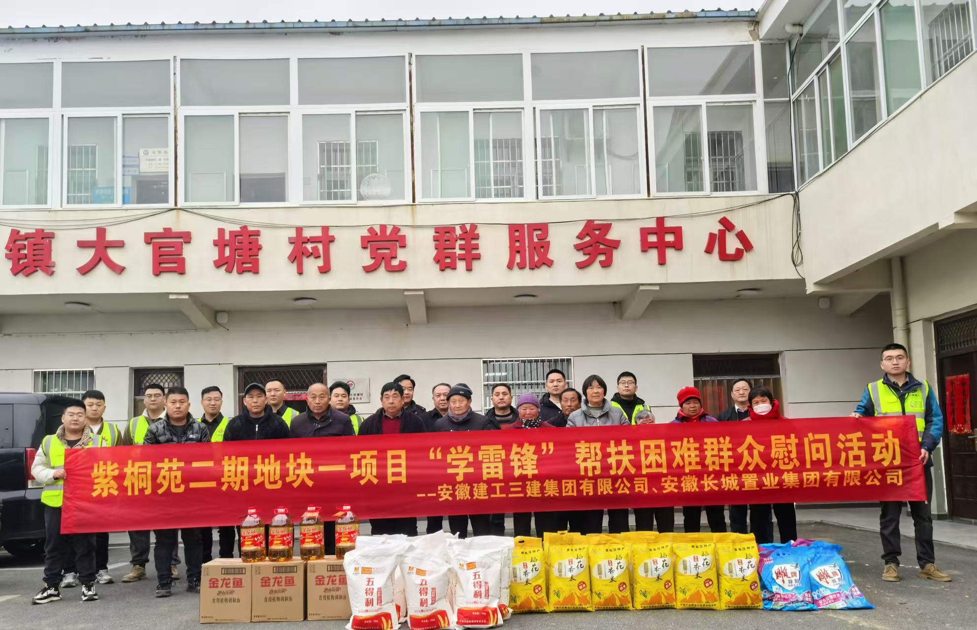 十分公司紫桐苑二期地塊一項目黨支部聯(lián)合雙墩鎮(zhèn)人民政府村鎮(zhèn)規(guī)劃建設(shè)辦、安徽長城置業(yè)集團(tuán)有限公司組織項目管理人員前往長豐縣雙墩鎮(zhèn)大官塘村委會開展“學(xué)雷鋒”幫扶困難群眾慰問活動,為困難群眾送去了米、油、面等生活物資,并與他們親切交談,幫助人民群眾解決生活困難,鼓勵他們保持樂觀心態(tài)。