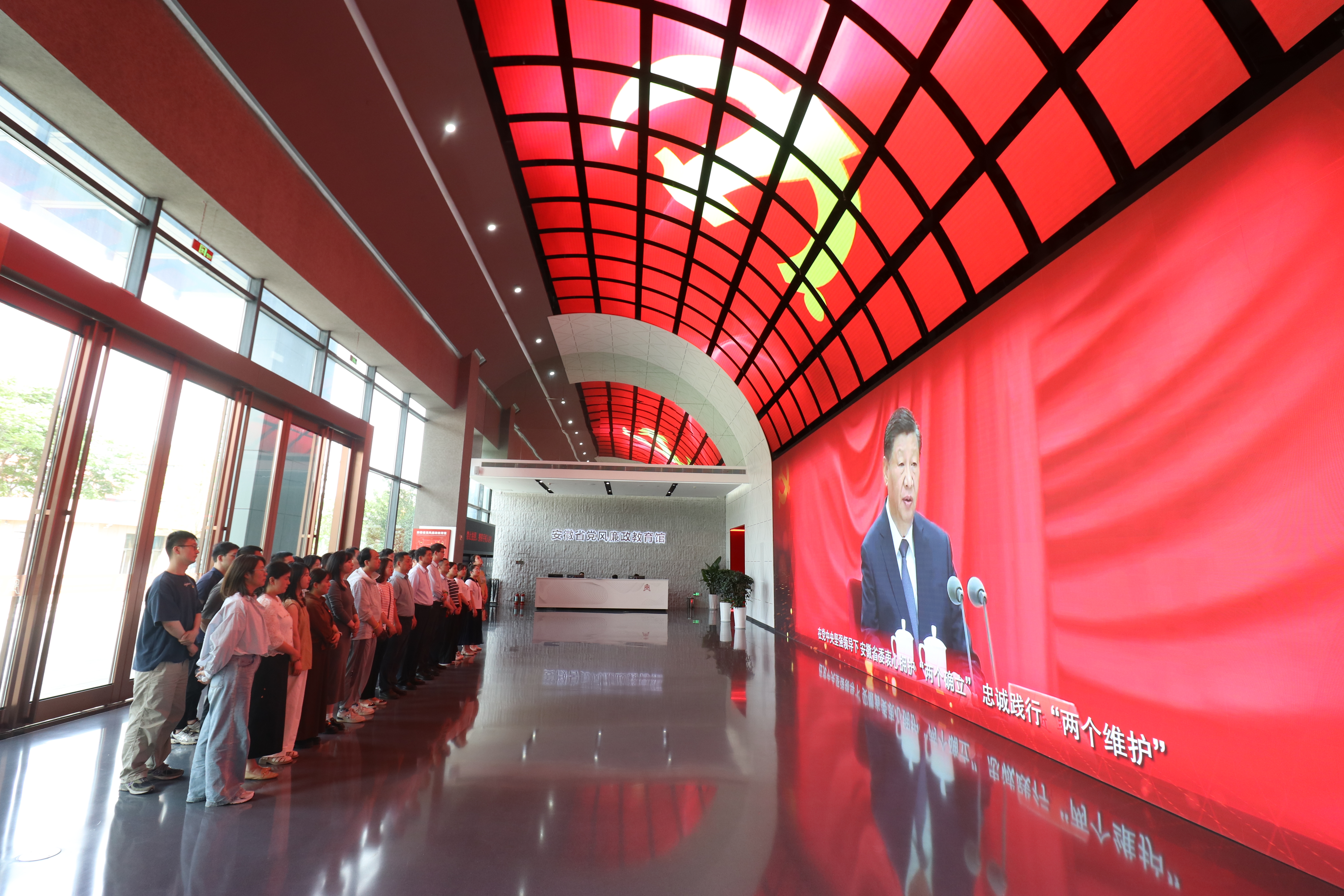 在黨風廉政教育基地,全體黨員干部集中觀看了專題片《永遠在路上》,直觀感受黨中央堅定不移推進全面從嚴治黨、深入開展反腐敗斗爭的決心和力度。隨后在講解員的帶領下,大家依次參觀了“紀律立黨 從嚴治黨”“以案為鑒 警鐘長鳴”“廉潤江淮 清風揚帆”“不忘初心 永葆清廉”四個展廳,并一同觀看警示教育片,一樁樁觸目驚心的案例、一張張悔恨交加的面孔,深入揭示了腐敗分子從思想蛻變到行為墮落的全過程,引得眾人駐足深思,體悟腐敗行為對個人、家庭及社會的巨大危害。