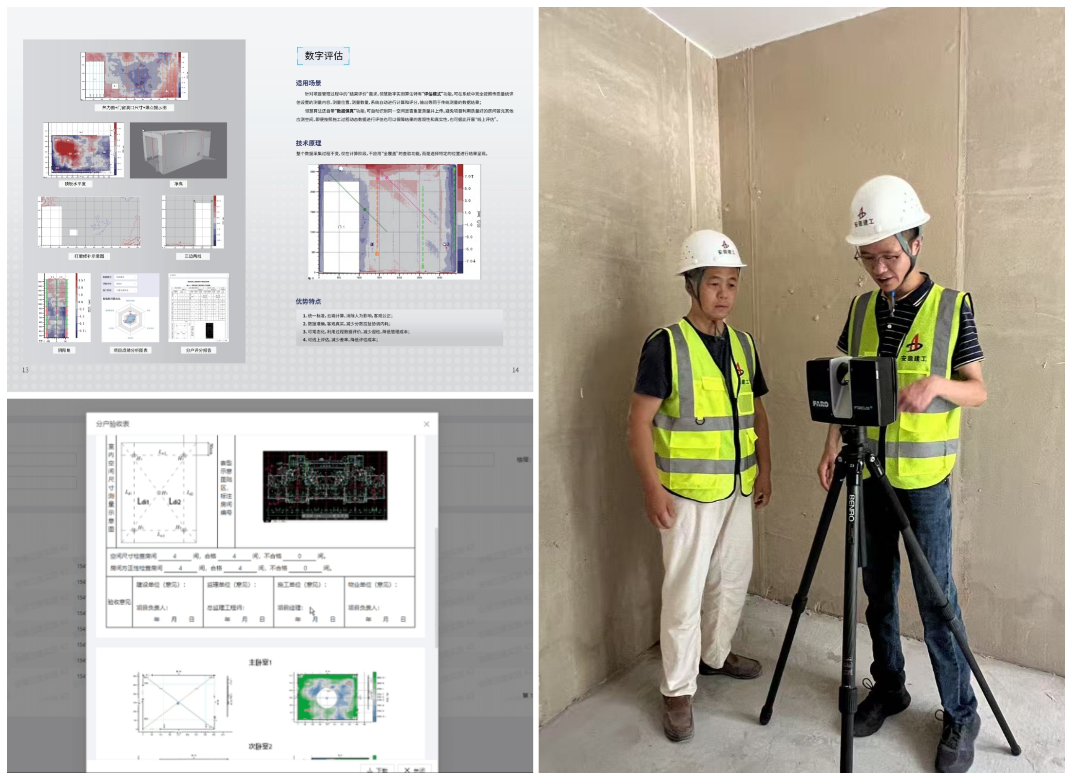 在合肥新西站安置點(diǎn)項(xiàng)目現(xiàn)場(chǎng),操作人員通過(guò)移動(dòng)終端操控實(shí)測(cè)實(shí)量機(jī)器人,僅需3-5分鐘即可完成單戶多房間全屋掃描。機(jī)器人搭載的三維激光掃描儀以每秒200萬(wàn)點(diǎn)速度捕捉空間數(shù)據(jù),自動(dòng)執(zhí)行墻面平整度、垂直度、陰陽(yáng)角方正度等測(cè)量任務(wù),實(shí)時(shí)生成多維度數(shù)據(jù)報(bào)告,表格可按分戶驗(yàn)收格式自動(dòng)導(dǎo)出。相較傳統(tǒng)2人45分鐘(含20分鐘人工制表)的作業(yè)模式,效率提升近10倍,且規(guī)避了人為測(cè)量誤差。實(shí)測(cè)實(shí)量機(jī)器人的應(yīng)用,既減輕了項(xiàng)目人員測(cè)量工作負(fù)擔(dān),又提高了分戶驗(yàn)收數(shù)據(jù)準(zhǔn)確性,提升住宅工程交付效率,還可以減少中間移交糾紛,實(shí)現(xiàn)測(cè)量數(shù)據(jù)貫穿驗(yàn)收、整改、移交等各階段,數(shù)據(jù)可溯源、可共享、可重復(fù)利用,杜絕人為干擾,有效增強(qiáng)工程管理透明度。
