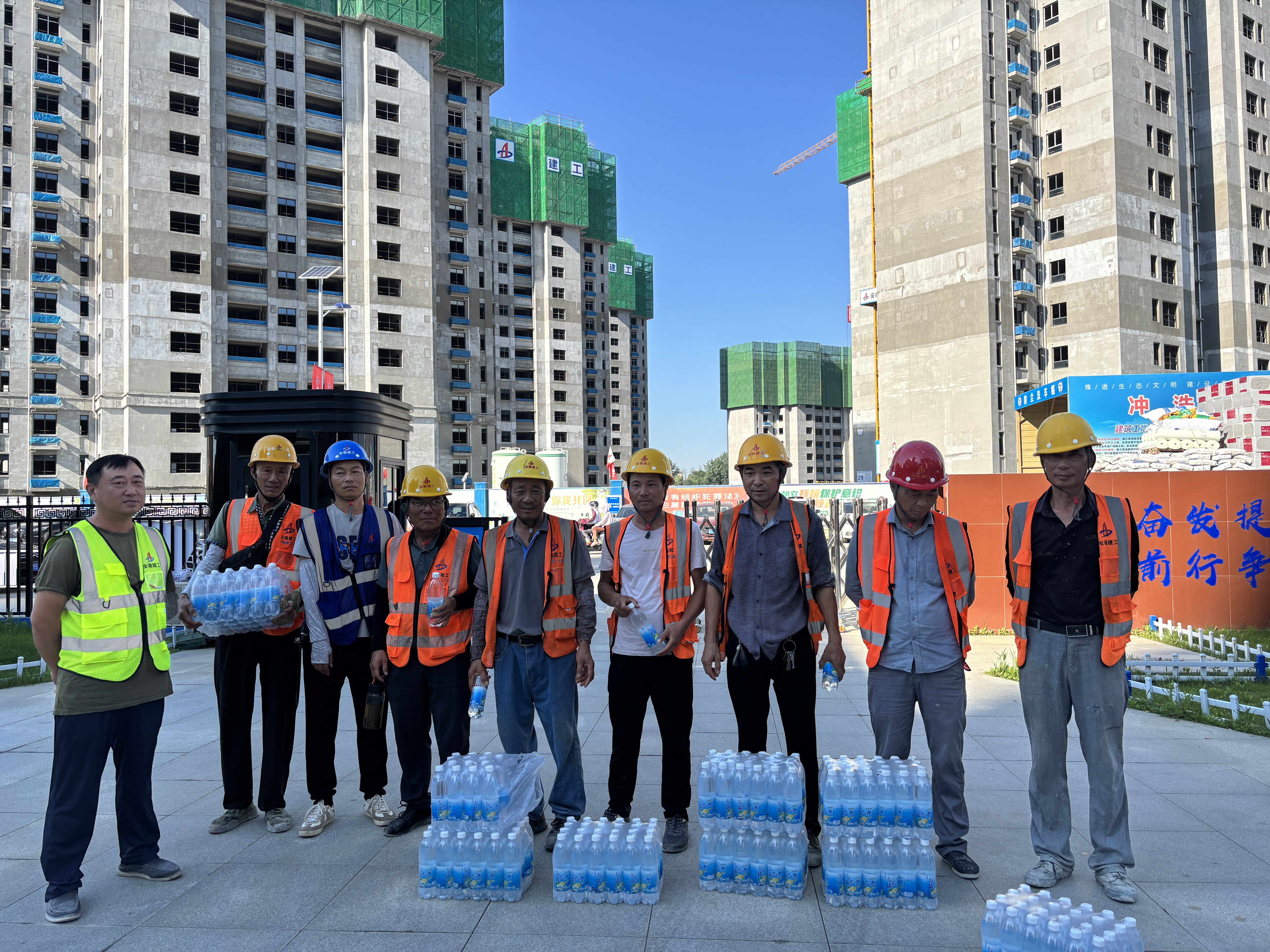 第二建筑公司董崗星辰苑項目部迅速行動,推出一系列防暑降溫“涼”策,全力保障工人的身體健康與施工安全。項目部管理人員為工人發放了礦泉水、藿香正氣水等防暑降溫物資,時刻關注工人的工作狀態。為應對高溫,項目部采取“抓兩頭、歇中間”的施工模式,同時在現場設置了多個休息區,配備了充足的飲用水和防暑藥品。此外,還安排了專人定時巡查,密切關注工人身體狀況。