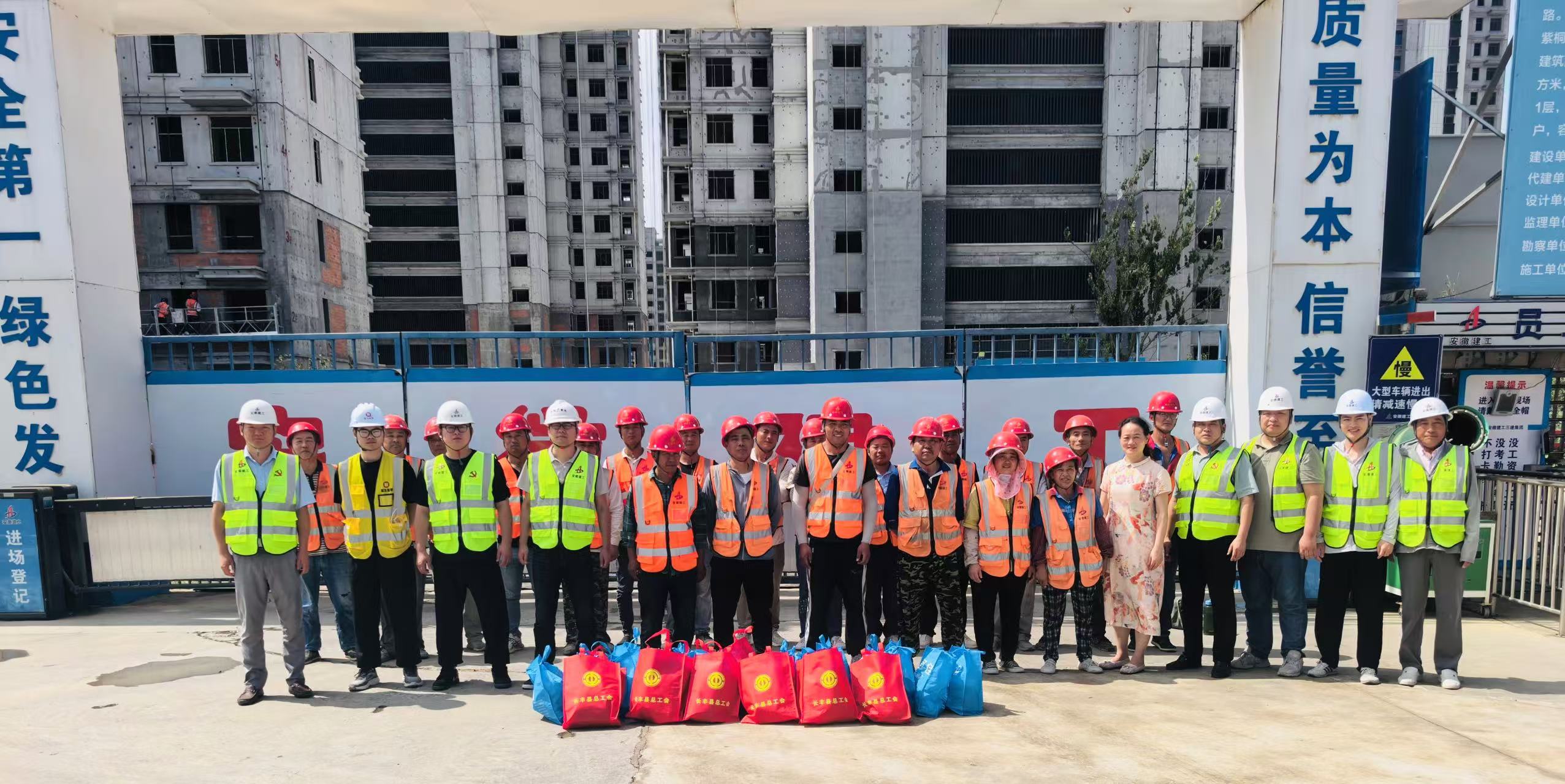 在項(xiàng)目現(xiàn)場,胡霞親切慰問一線建設(shè)者,將遮陽帽、水杯、花露水、防暑藥品等防暑降溫物品發(fā)放至工人手中,詳細(xì)詢問了工人的日常作息調(diào)整、防暑措施落實(shí)等情況,并向項(xiàng)目部遞交了《關(guān)于做好職工防暑降溫工作的提示函》,叮囑項(xiàng)目負(fù)責(zé)人要嚴(yán)格執(zhí)行高溫作業(yè)規(guī)定,健全高溫天氣應(yīng)急響應(yīng)機(jī)制,科學(xué)合理安排施工時(shí)間,避開午后酷暑時(shí)段,備足防暑藥品、改善伙食供應(yīng),全方位保障廣大建設(shè)者的健康與安全。